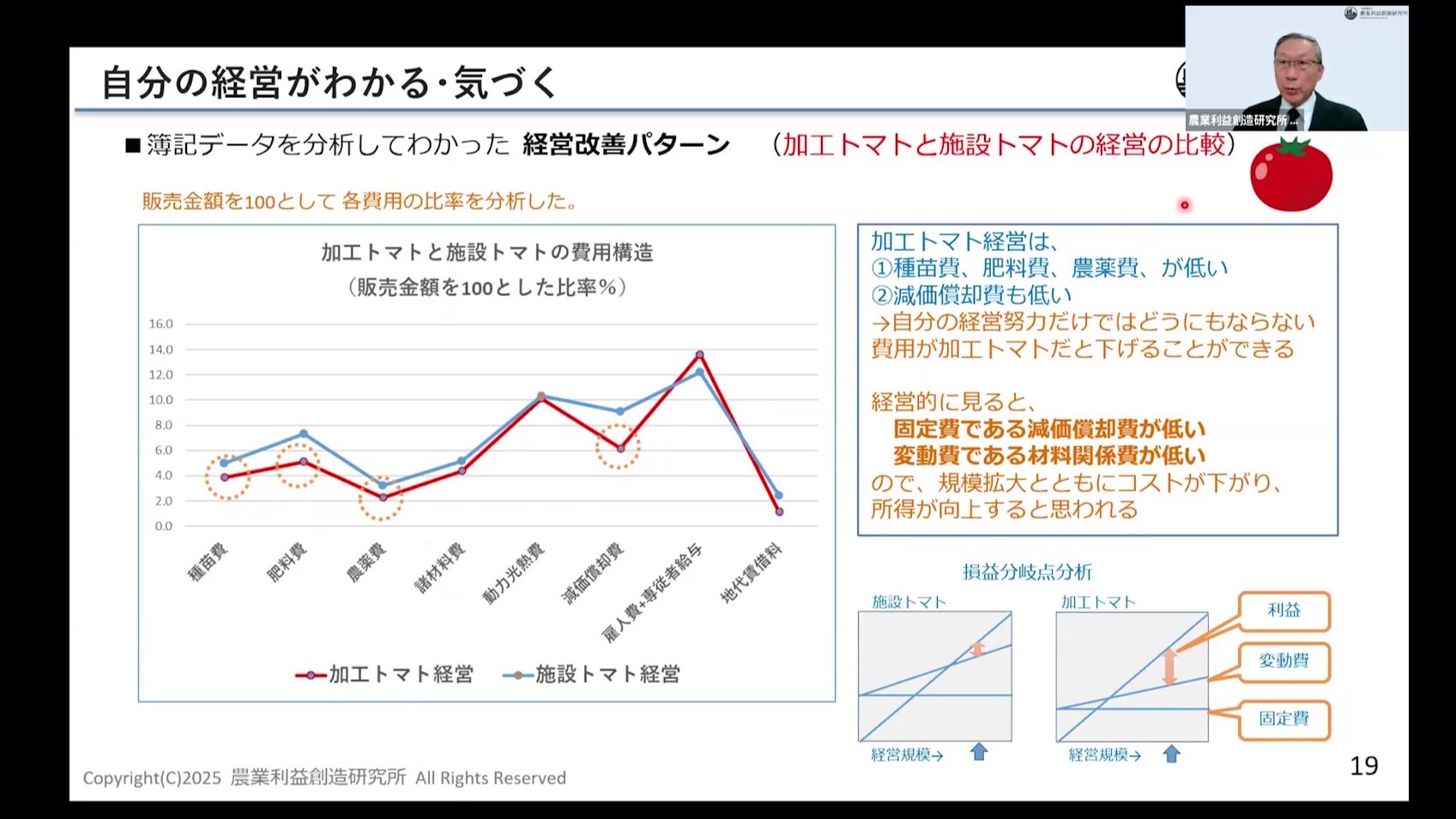 地域や品目によって状況は異なりますが、同一データを経年的に追うことは非常に重要です。どのくらい利益が出ているのかということを把握するために、経営状況を見つめることが基本ではないかなと思います。
